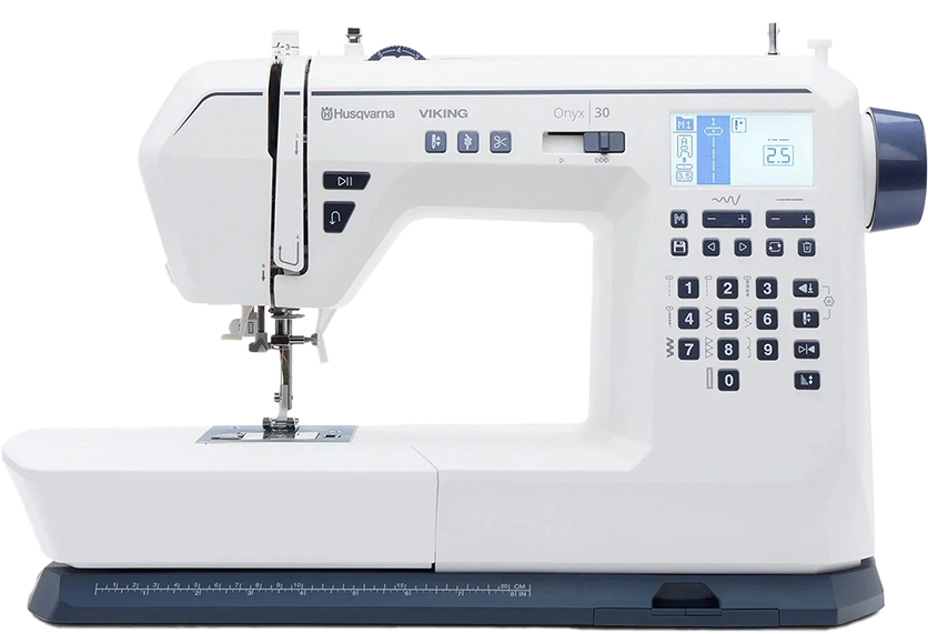 158 sömmar, inbyggd nålträdare och trådklipp. Datoriserad symaskin som klarar tuffa prövningar. Mycket tystgående. Rekommenderas av oss.