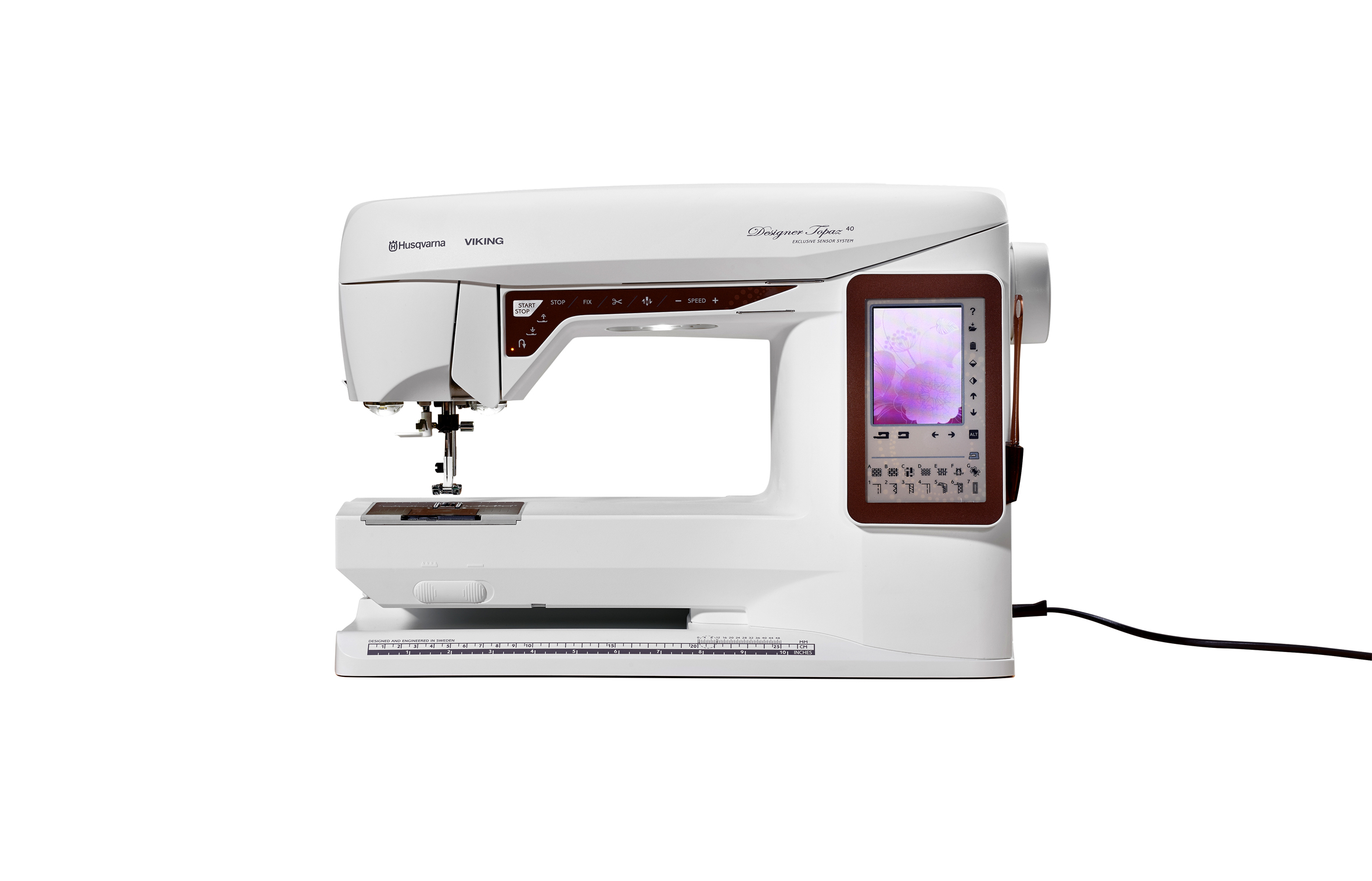 NYHET! Husqvarna Viking Designer Topaz 40 är en brodér- och symaskin som har 100 broderier samt 208 sömmar, färgtouch-skärm, exklusivt sensorsystem, exklusiv sömnadsguide, automatiskt trådklipp av hoppstygn, stor sömnadsyta 200mm, brodéryta 240 x 150 mm, 1 GB USB Embroidery Stick, automatisk trådspänning, stygnbredd 7 mm, stygnlängd 6 mm, sensor för övertråd och undertråd, nålträdare, 4 alfabet, stop/fix mm.